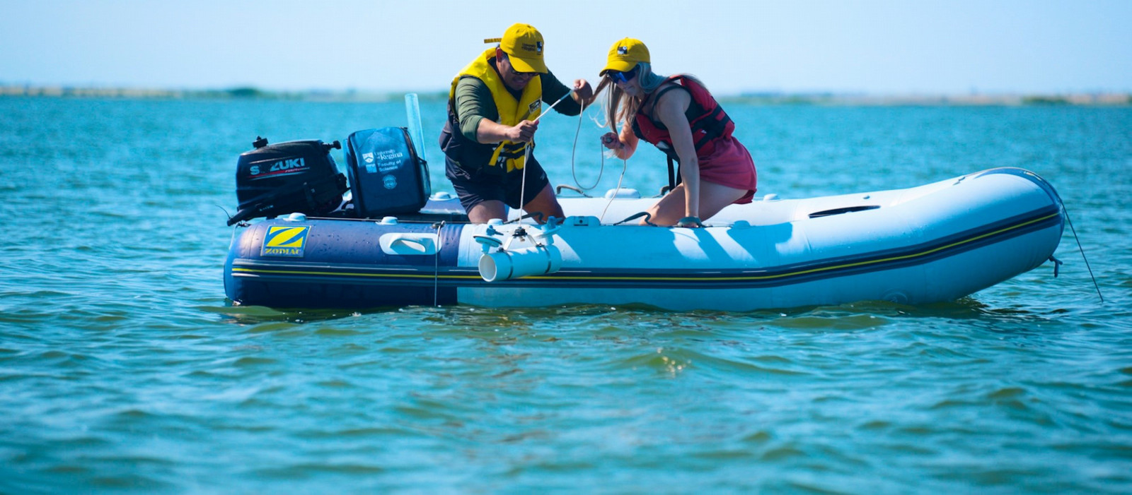 Two students sampling water on Last Mountain Lake, SK, which is one of the lakes that has been sampled for the last three decades. (Photo by University Communications and Marketing)